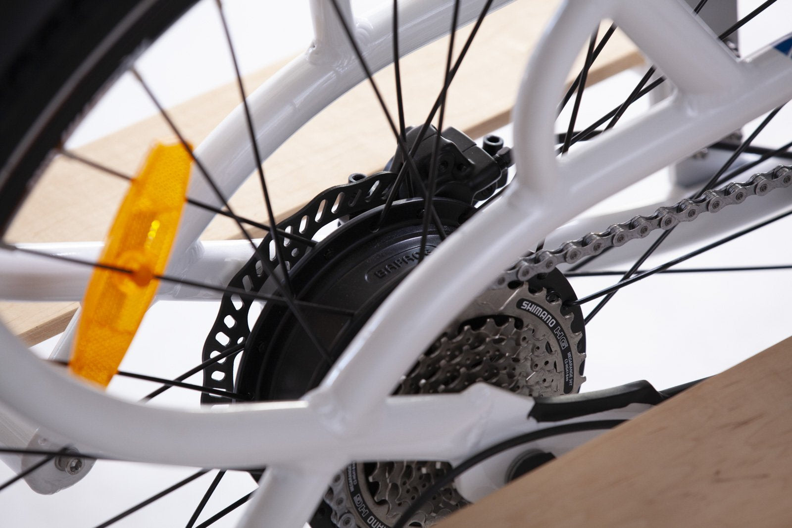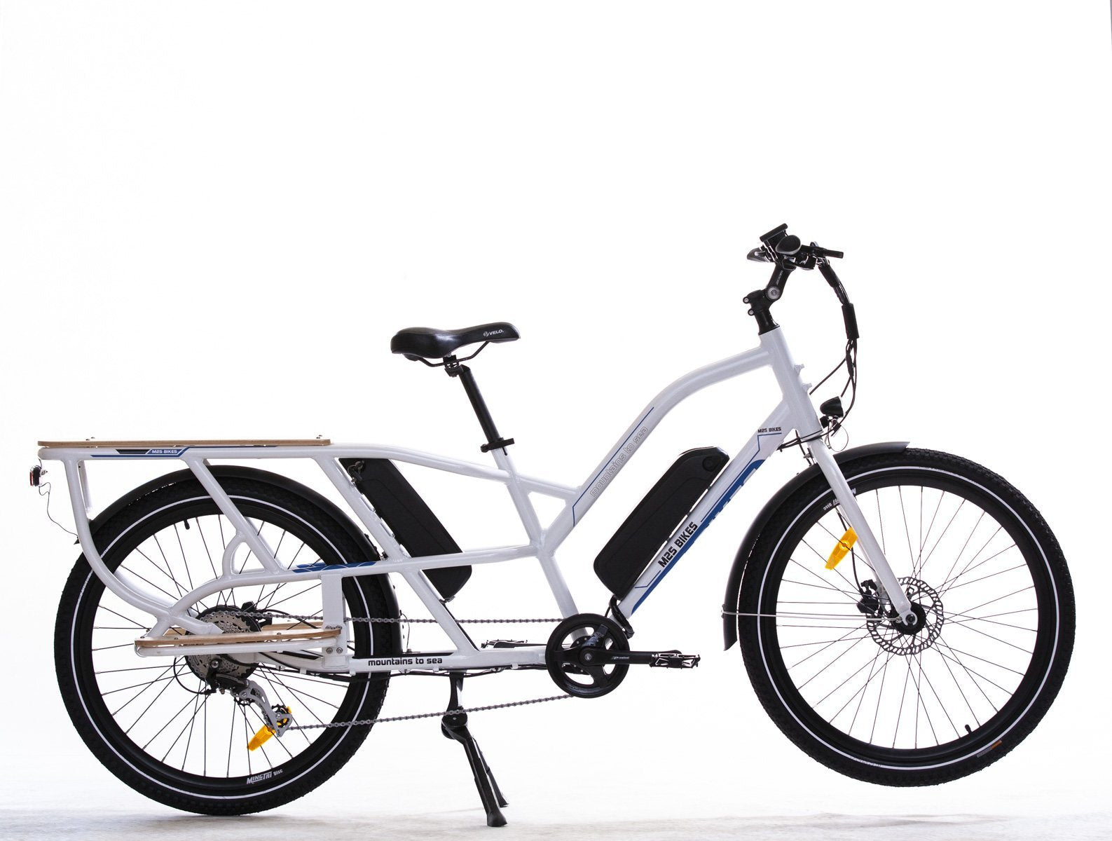 The All Go Cargo electric assist bike is the ultimate utility vehicle for those times when you want to get around town and get things done, but don't feel like hopping in the car. The rugged frame design is built to haul a load with ease and is capable of hauling up to 350 pounds while still making climbing hills and keeping up with traffic fun and enjoyable thanks to the powerful 500 watt rear hub motor.