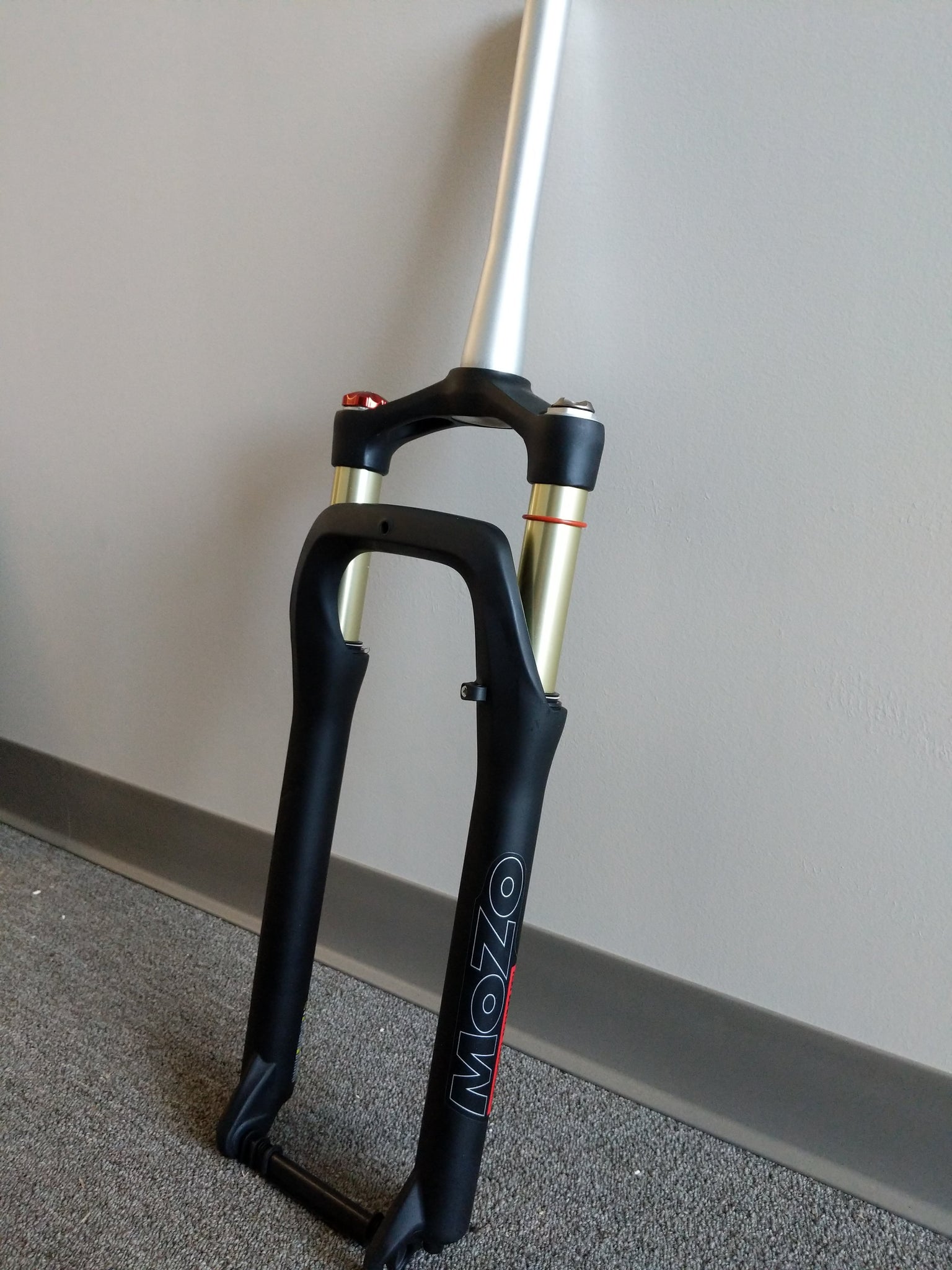 The Mozo air suspension fork is an upgrade to the stock Hydraulic fork that comes on the All Terrain fat bike series. It features adjustable air suspension to allow for a greater level of tuneability for various riding conditions. This shock features a tapered steerer designed to work with All Terrain bikes that shipped with a suspension fork.